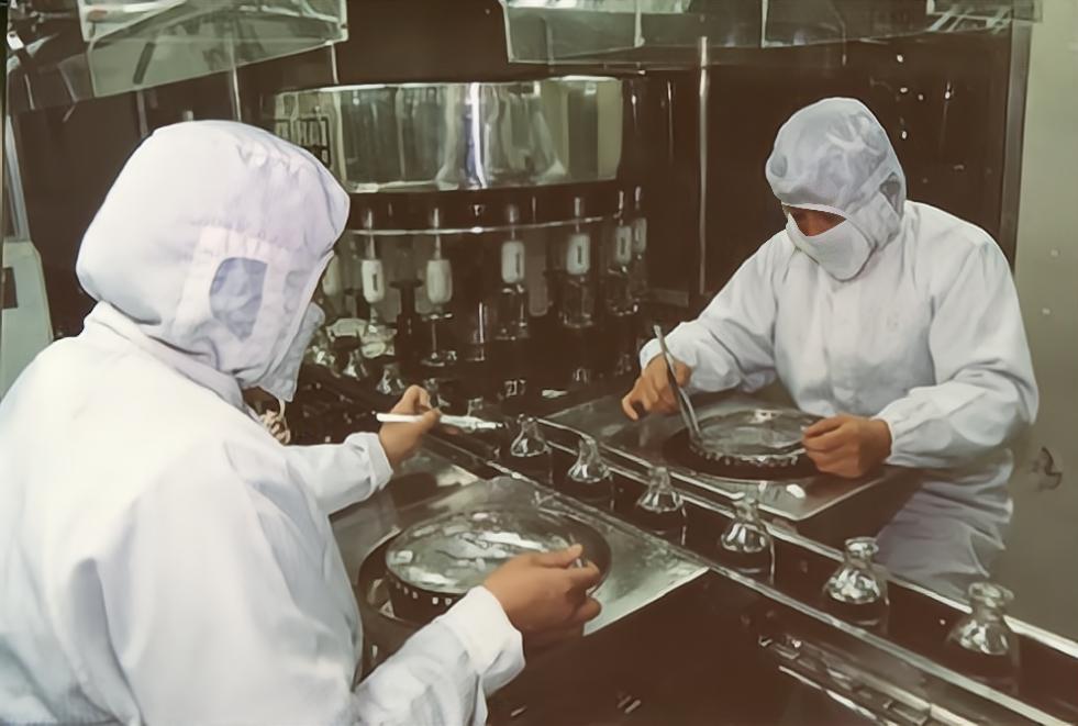 輸液生產(chǎn)線: 1965年,藥廠購進(jìn)了輸液生產(chǎn)自動化聯(lián)動線,當(dāng)時,這是全國最先進(jìn)的設(shè)備,曾吸引了20多個省、市的制藥廠前來參觀學(xué)習(xí),自動化聯(lián)動線的上馬,大大減輕了工人的勞動強度,提高了輸液的生產(chǎn)能力。